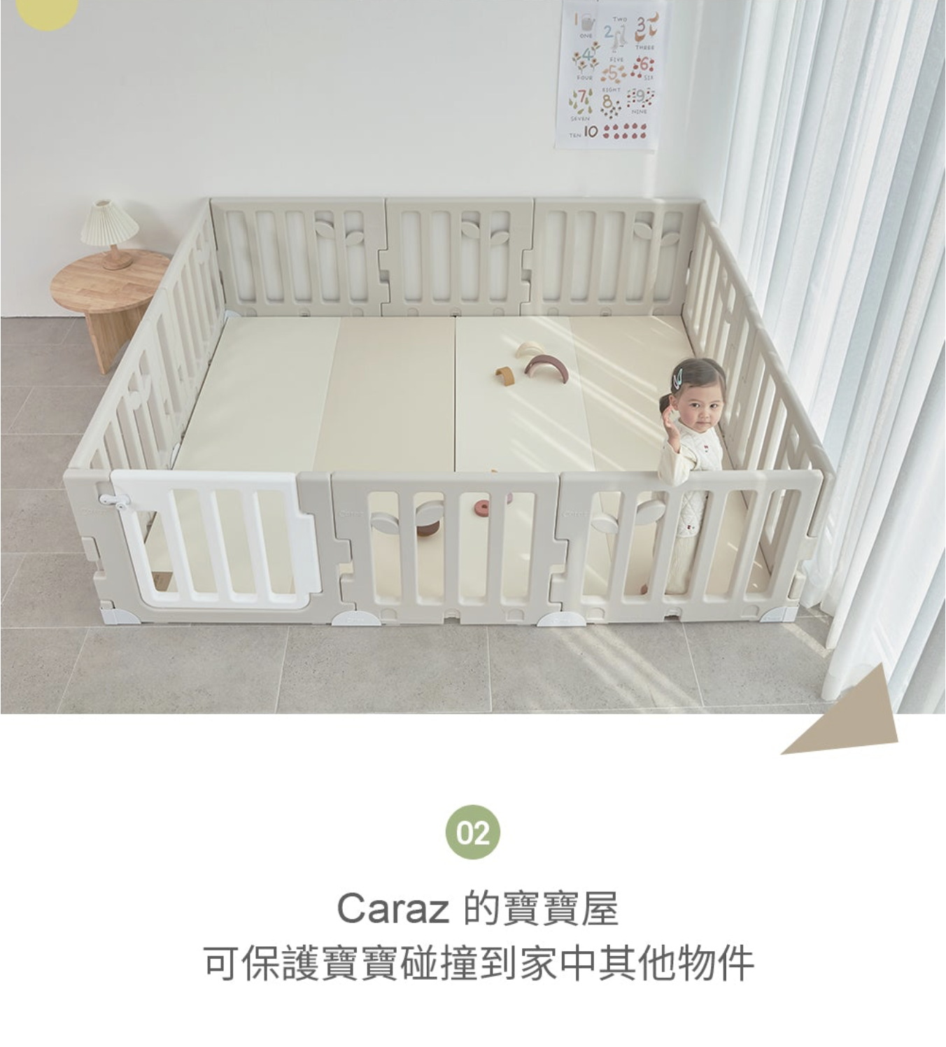 配備配套的遊戲墊的 Caraz 寶寶屋,可為您的孩子提供一個在家中安全的遊樂區。