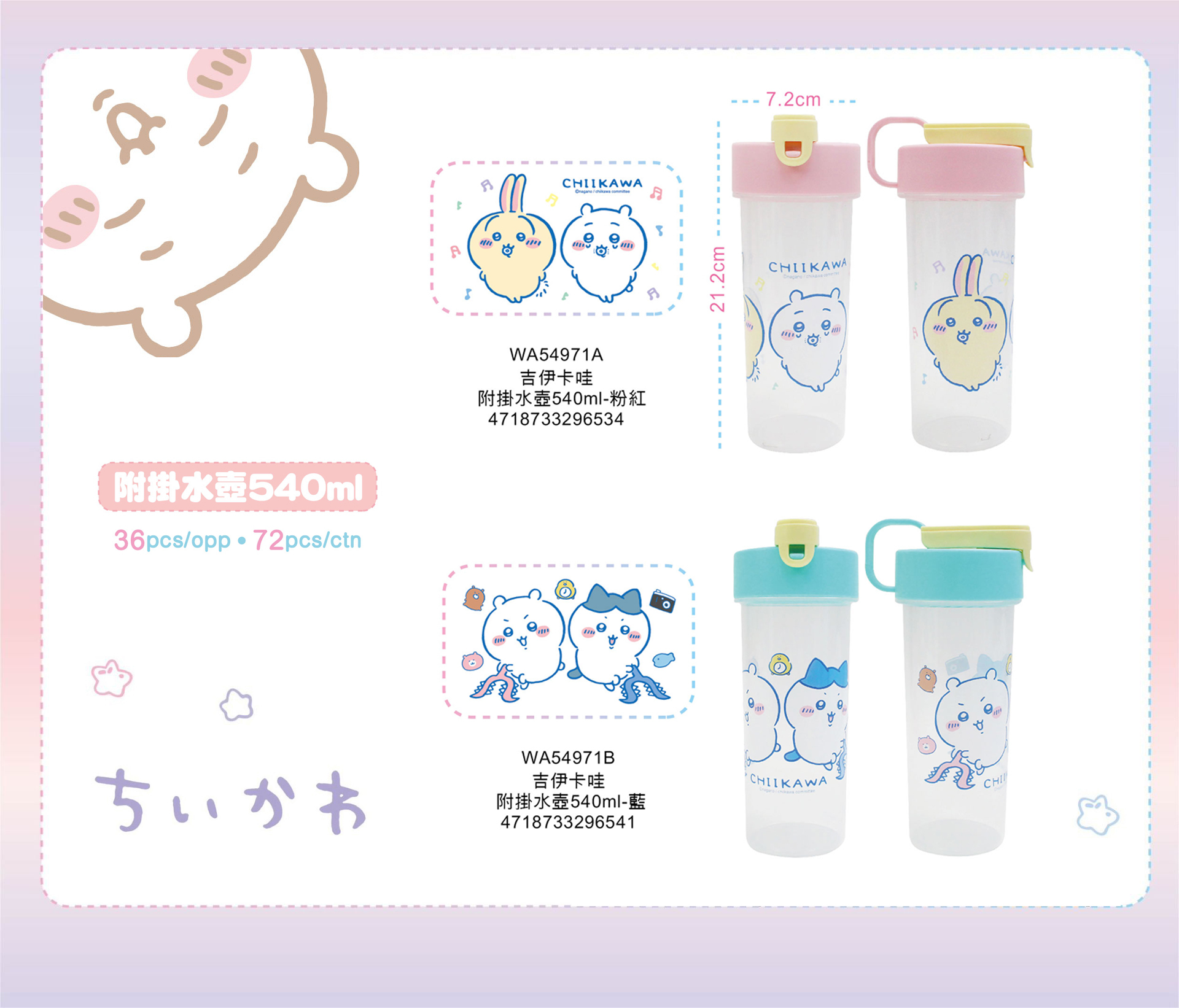 Chiikawa 吉伊卡哇 附掛水壺 (540cc) (粉紅色)