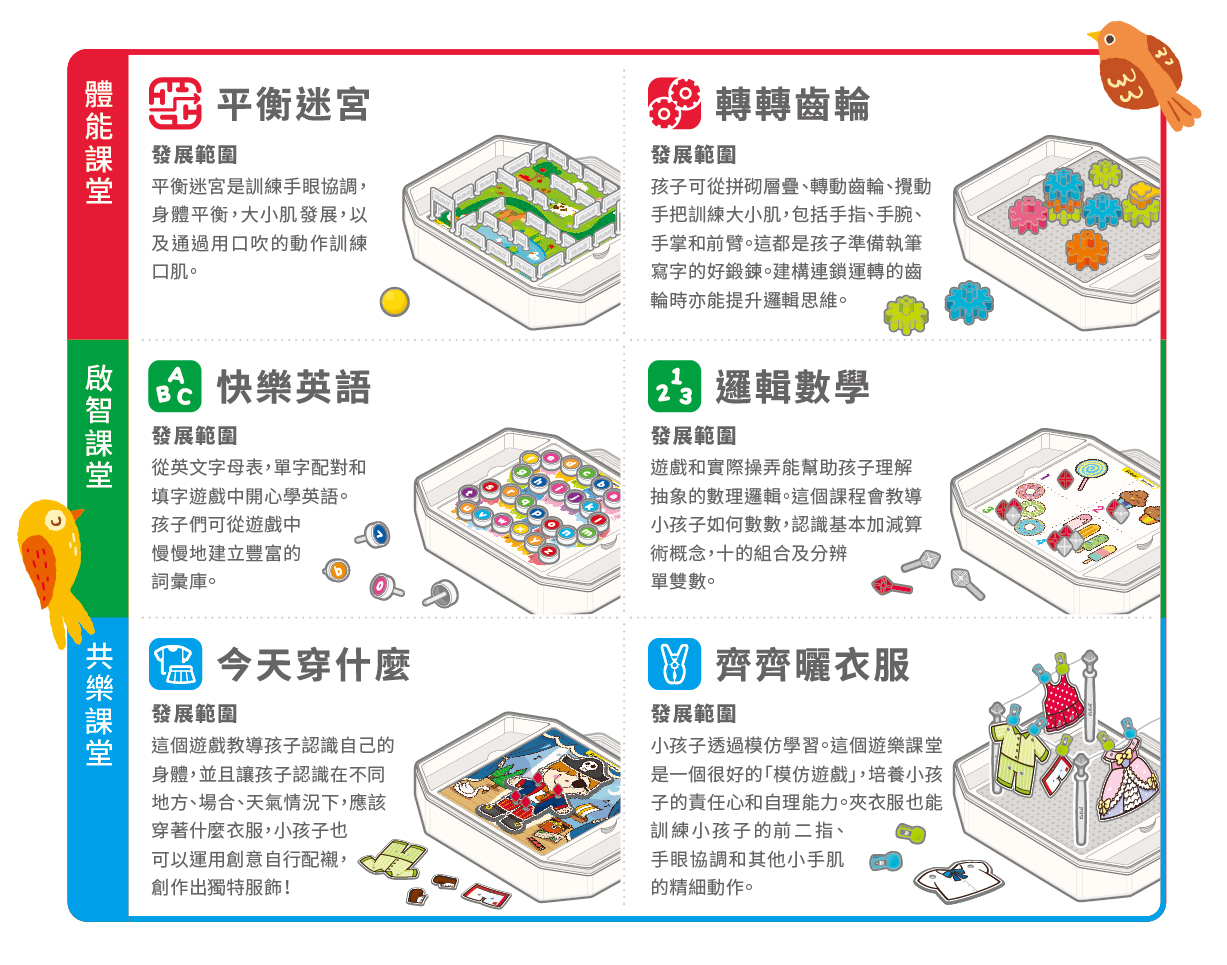 奇智奇思課堂」是一套專為3-6歲孩子設計的學習遊戲。它是一套6合1的學習遊戲套裝,讓孩子在「體能」、「智能」及「社交」三方面都能通過遊戲達至均衡發展。父母可以在家中和孩子一起玩,老師可以用於學校培訓學生