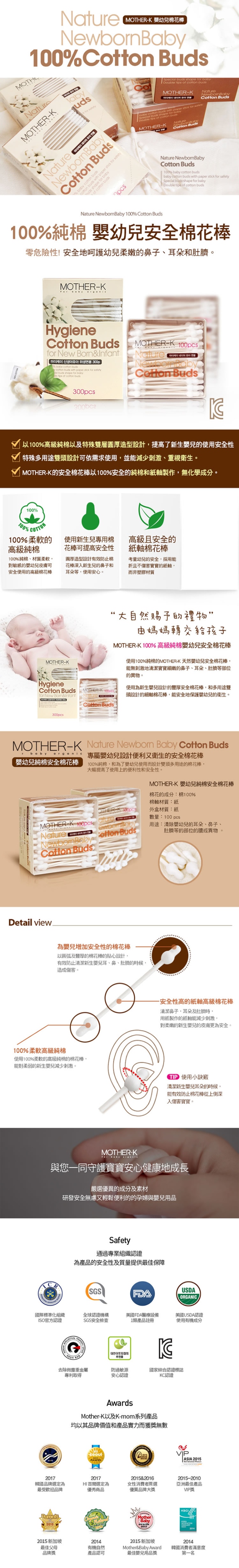 - 以圓弧及豐厚棉花棒的貼心設計,提高新生嬰兒的使用安全性