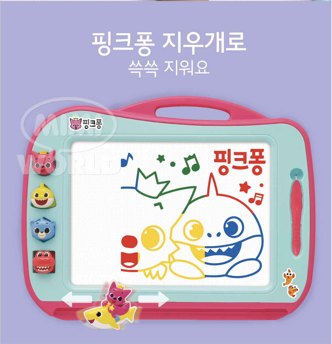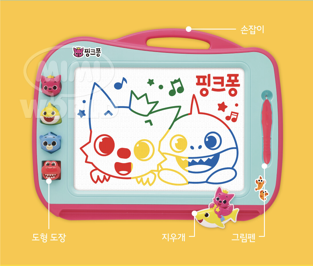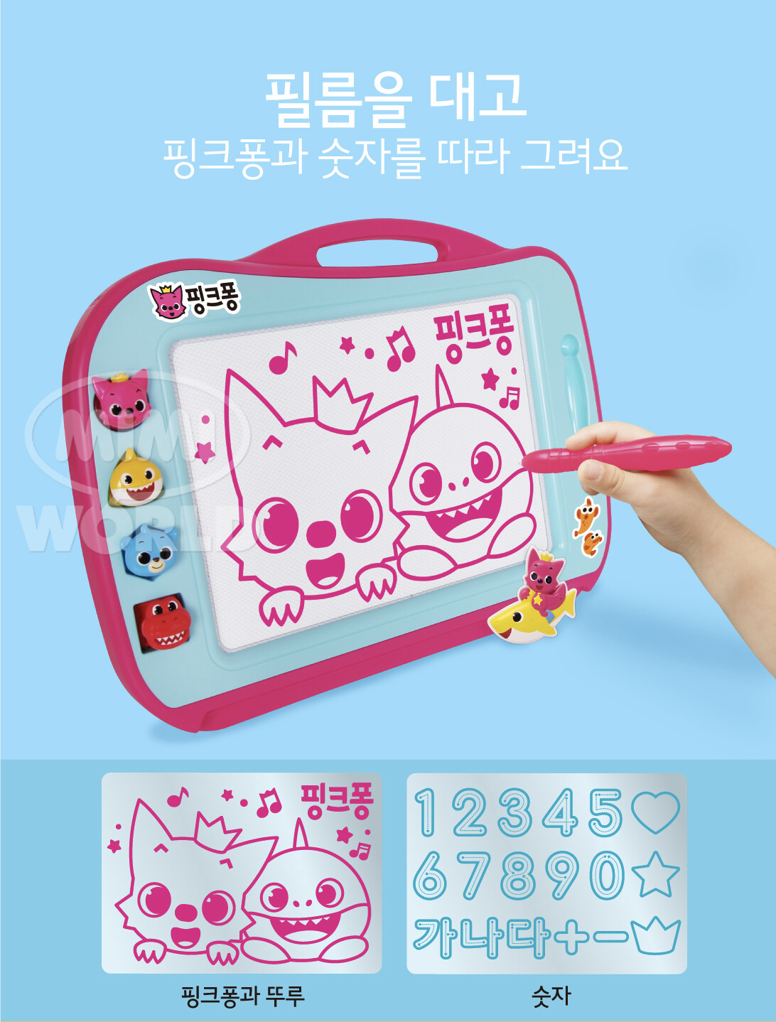 有2塊大透明膠片,比小朋友跟住畫babyshark同Pinkfong或者寫數字
