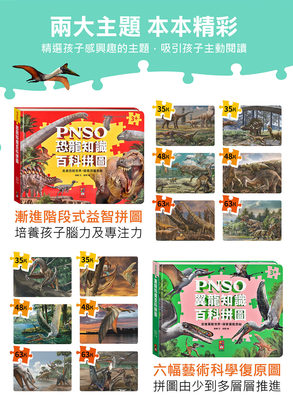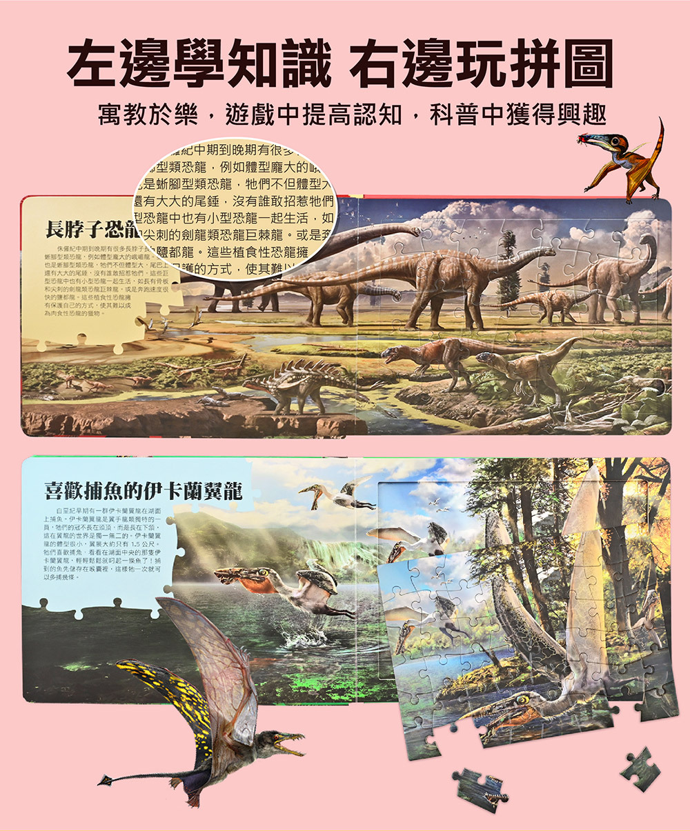 進階式益智拼圖,結合遊戲和百科的恐龍拼圖書