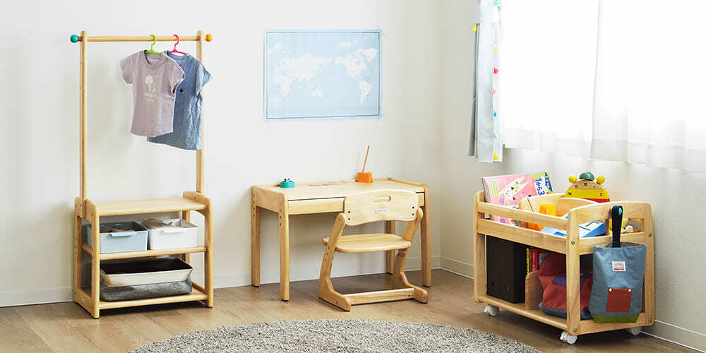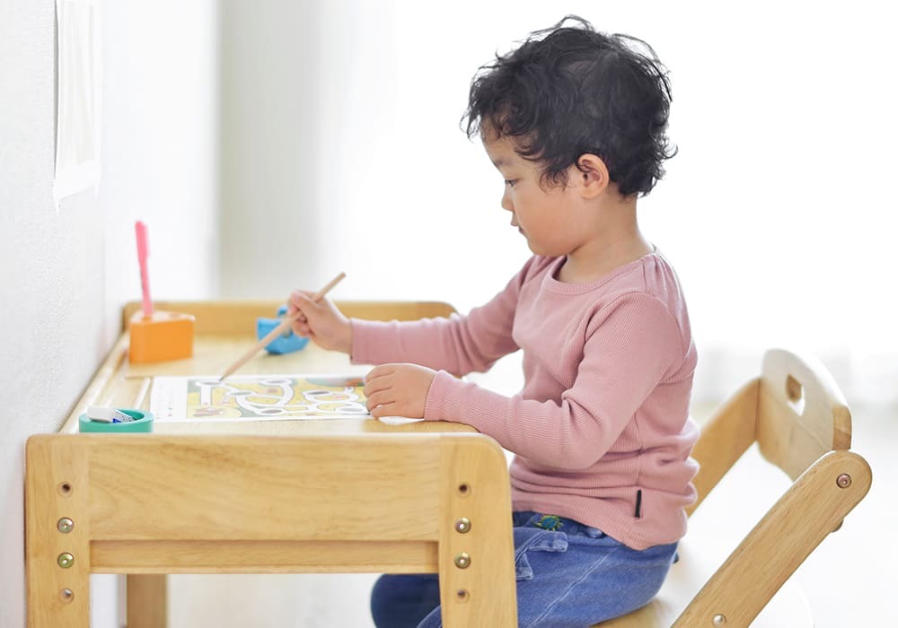 書桌有一個調節裝置。可以根據孩子的情況選擇合適的高度。