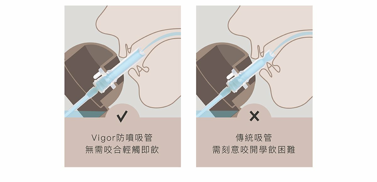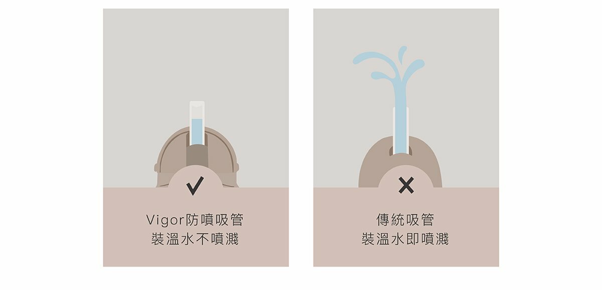 新革命!獨家專利Vigor防噴系統,溫水不噴、倒置不漏。