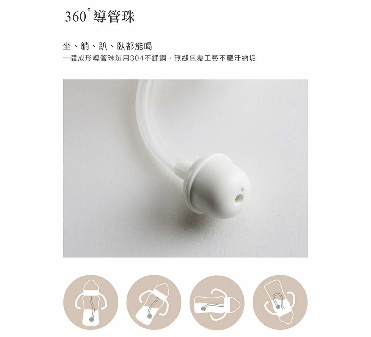 360˚導管珠,坐、躺、趴、臥都能喝,導管珠無縫包覆工藝不藏汙納垢。