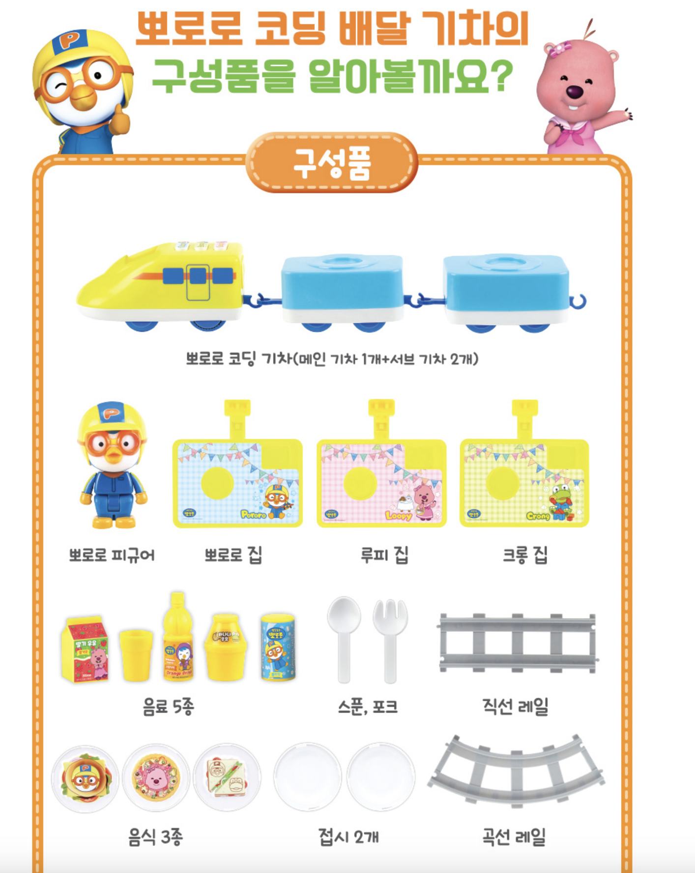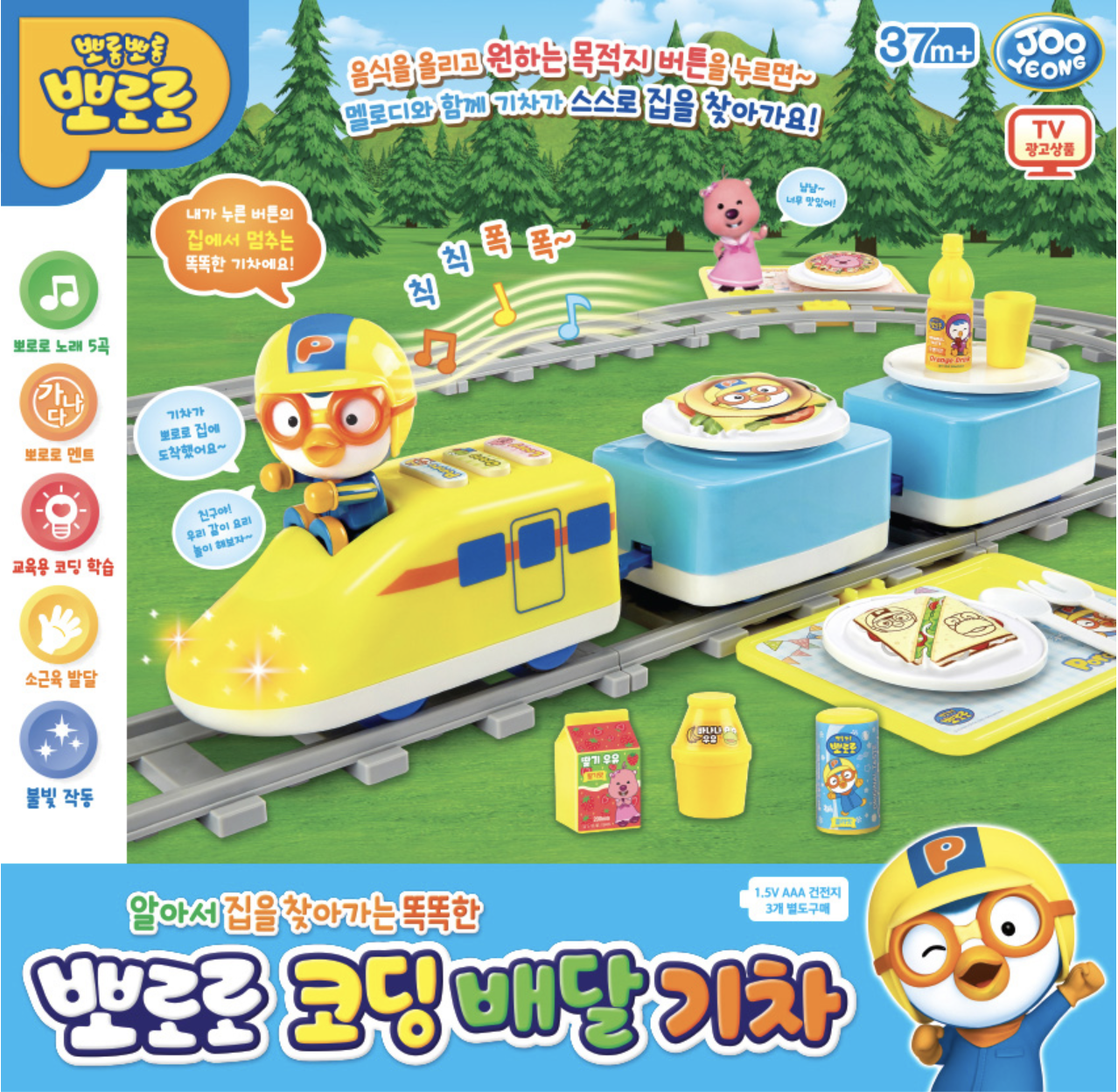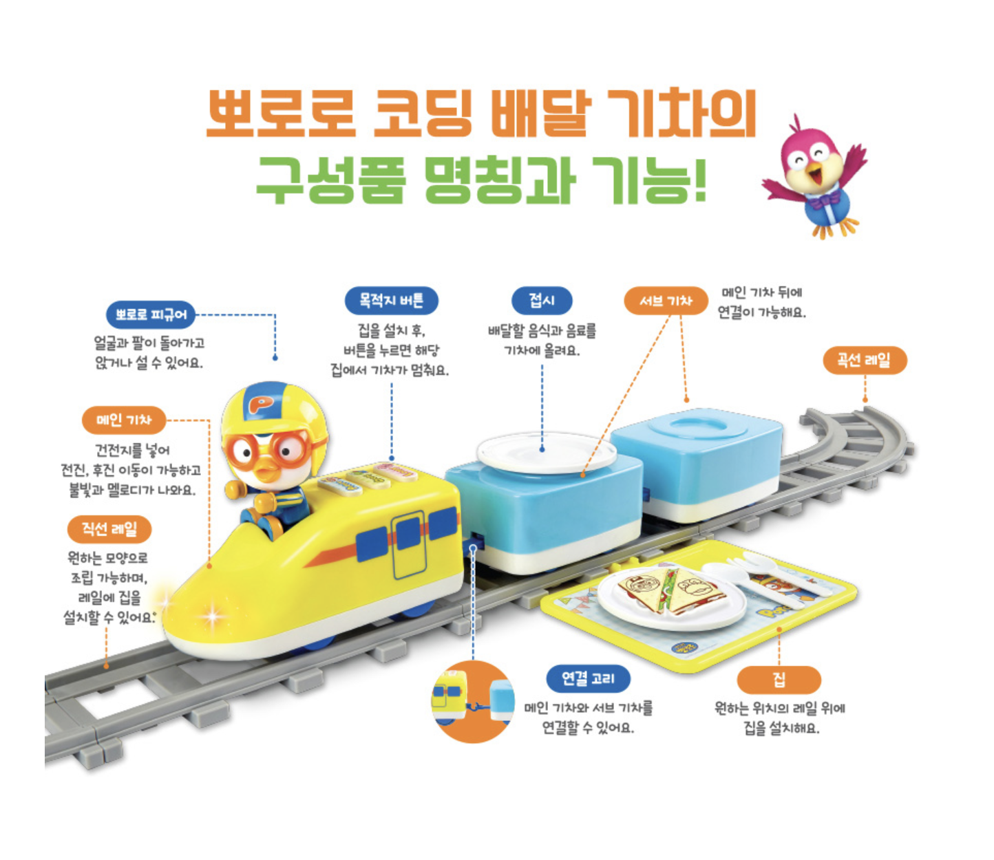 將飲品🥤食物🍙放在Pororo 火車上, 送去指定地點