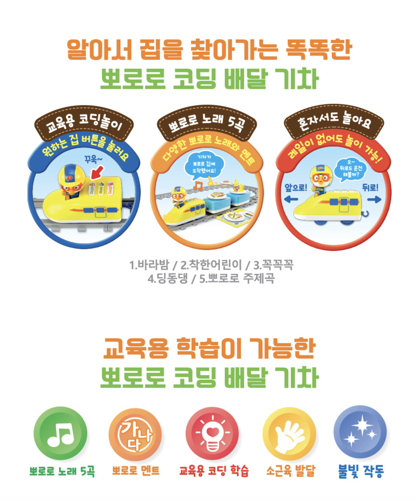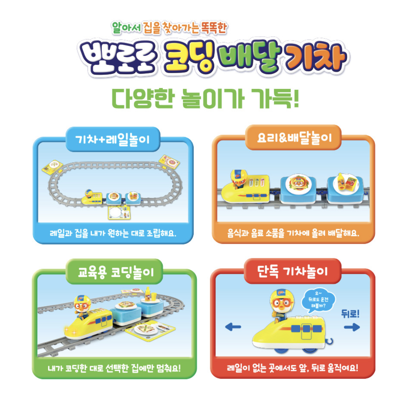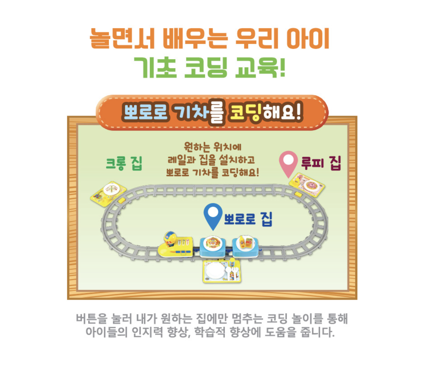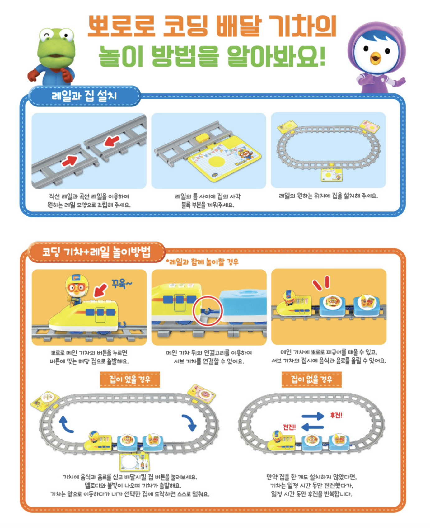 可以在軌道上加入3個停站房子🏠, 小朋友可以在Pororo 車上按下火車想在那一個房子停下來,