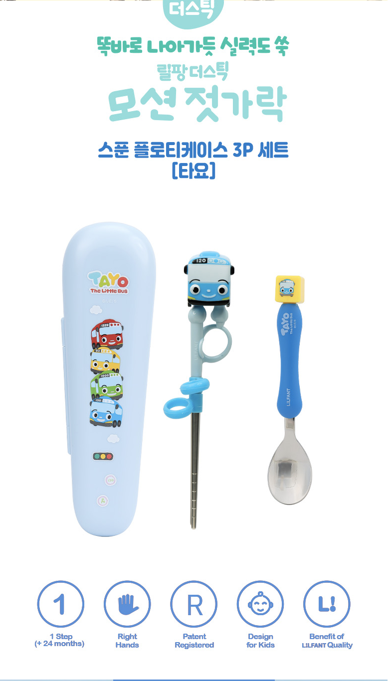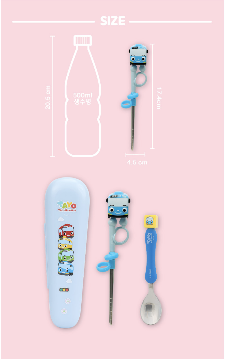 湯匙:不鏽鋼材質,湯匙柄上端有TAYO卡通圖案。